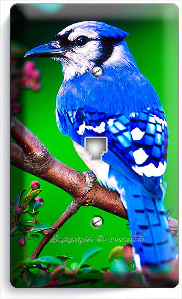 BLUE JAY NORTH AMERICAN BIRD ON TREE PHONE TELEPHONE WALL PLATE COVER ROOM DECOR