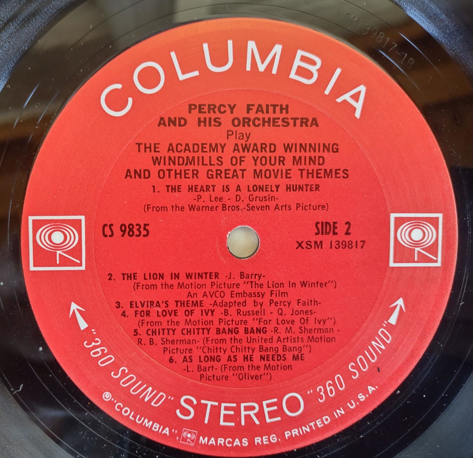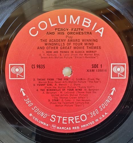 Product description: STEREO VINYL LP! Percy Faith And His Orchestra: Play The Academy Award Winning 'Windmills Of Your Mind'! 1969 Columbia Release! TRACKS: A1. How Are Things In Glocca Morra? (From "Finian's Rainbow"); A2. Theme from "The Fox"; A3. Funny Girl; A4. Theme from "The Thomas Crown Affair" (Windmills Of Your Mind); A5. Star!; B1. The Heart Is A Lonely Hunter; B2. The Lion In Winter; B3. Elvira's Theme; B4. For Love Of Ivy; B5. Chitty Chitty Bang Bang; B6. As Long As He Needs Me (From "Oliver!").