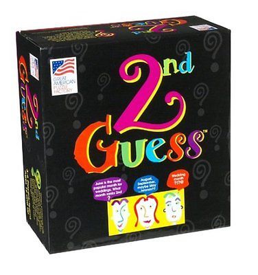 2nd Guess Trivia Game Where second best is second to none Where you get a second chance to Guess the second best 3 -6 Players / Teams Ages 12 and Up Includes .220 2nd Guess Cards with 660 Questions .1 Score Pad .6 Sets of Multiple Choice Marke