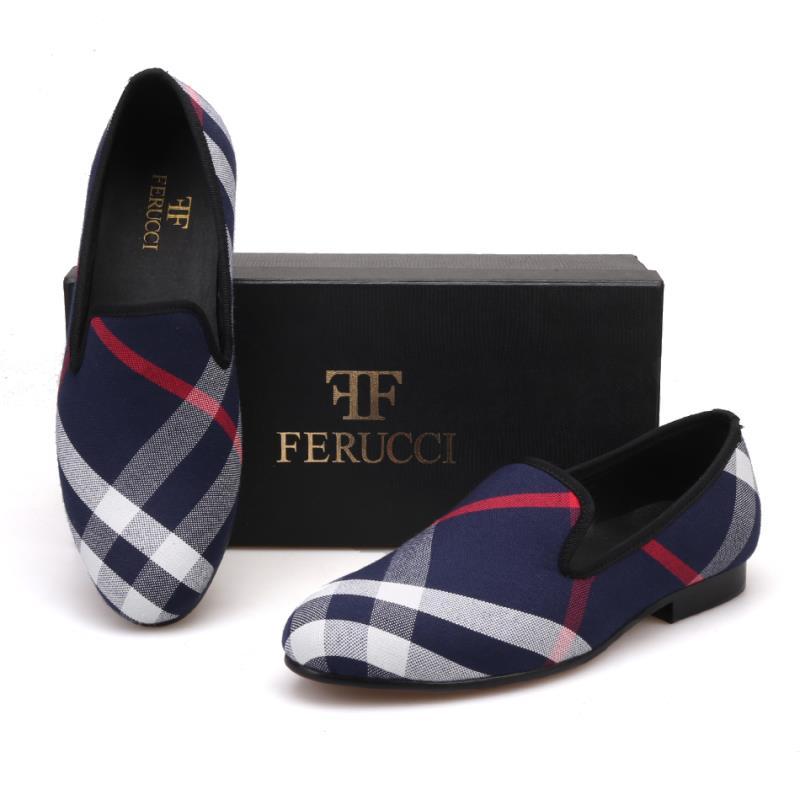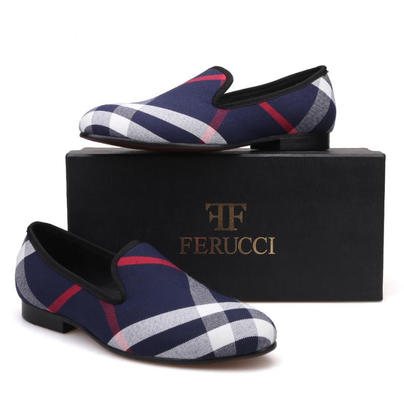 FERUCCI Scottish Blue Custom-made Linen Slippers Loafers