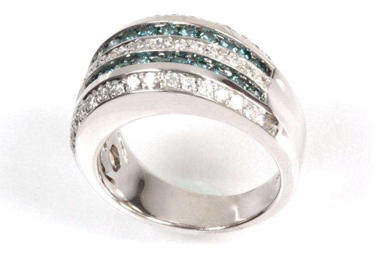 1.8 ct tw Natural Blue Diamond Gold Statement Ring | 5 Diamond Row Channel Ring