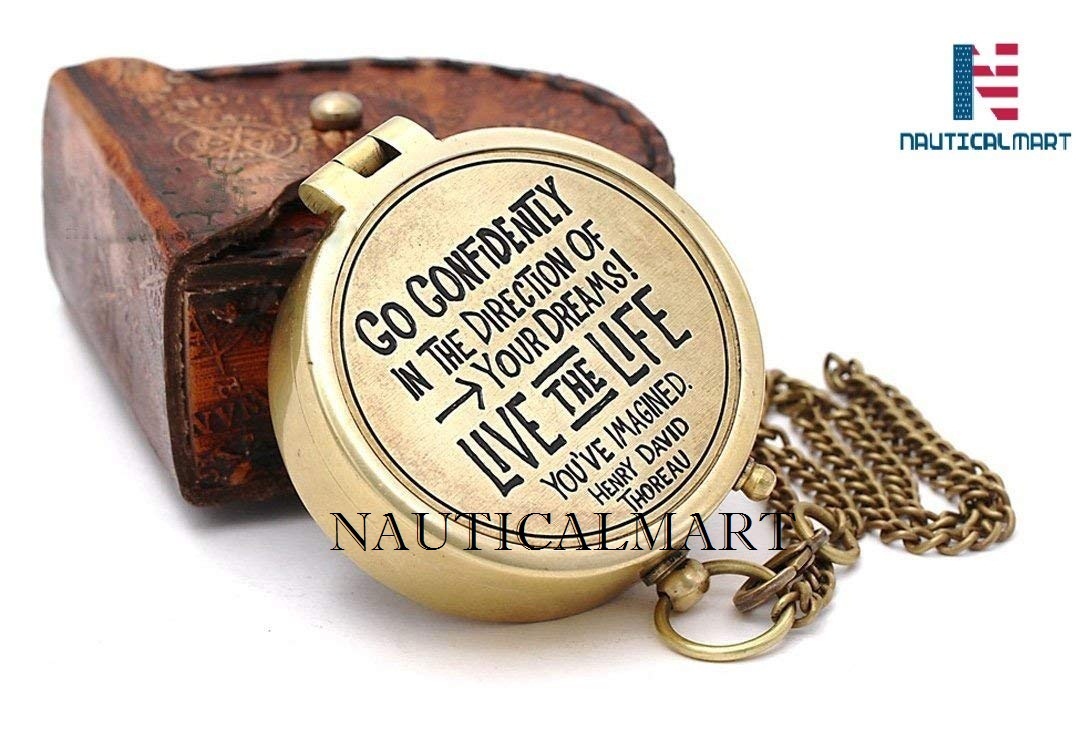 Solid Brass Compass Antiquated Brass Finish With Thoreau's Quote "GO CONFIDENTLY IN THE DIRECTION OF YOUR DREAMS LIVE THE LIFE YOU HAVE IMAGINED".