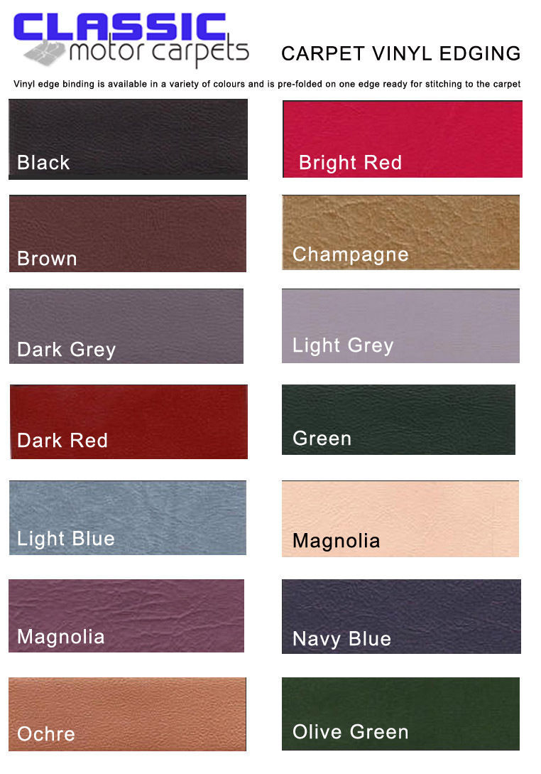 "Classic Car Carpet Set Samples - Deep Pile, Latex Backed - 10 colours"