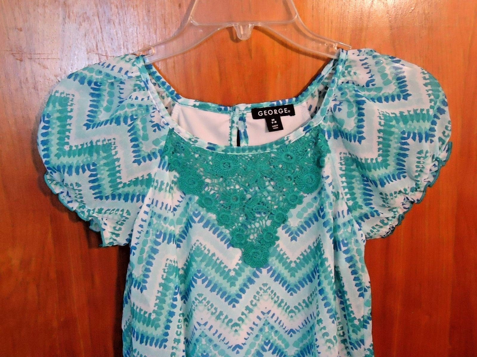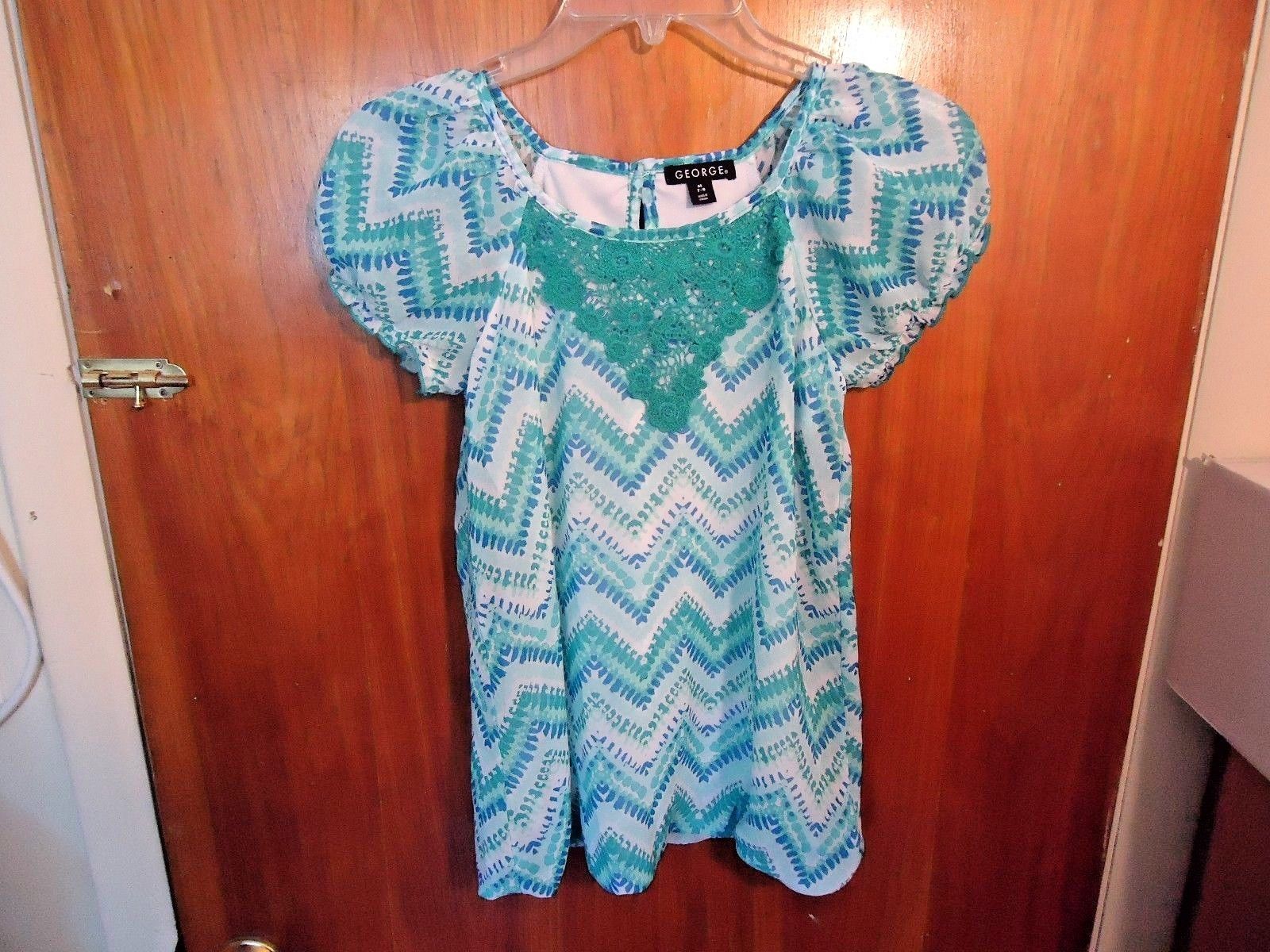 Here is a Womens / Girls George Size M 7-8 Multi Color Short Sleeve Top " BEAUTIFUL TOP ".The pics do not do this item(s) justice.If you have any concerns or questions about this item(s) please ask before bidding / purchasing this item(s).Thank You.-(CL8)
