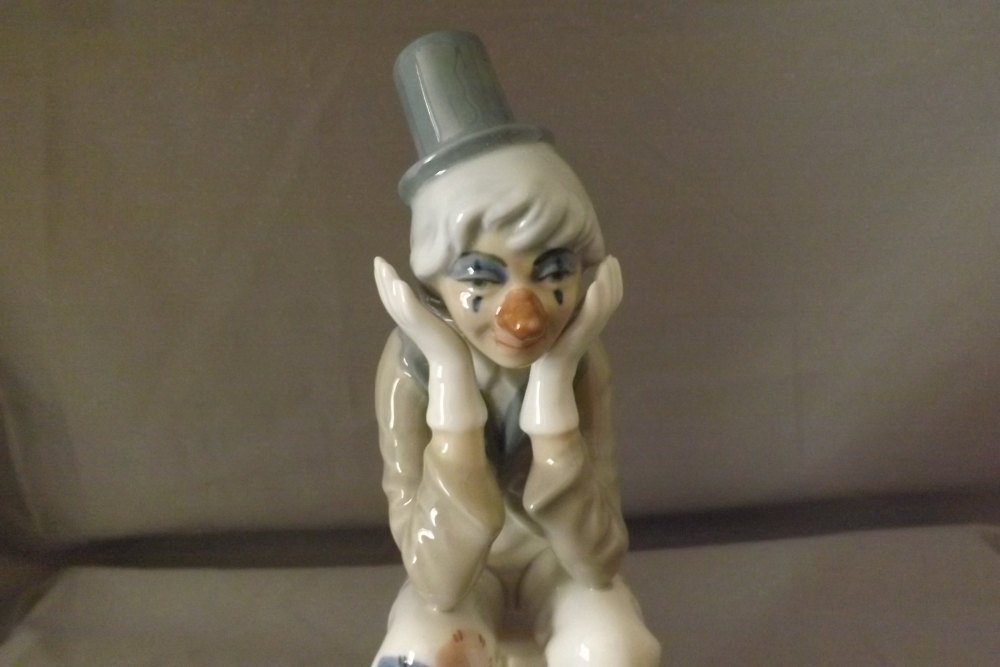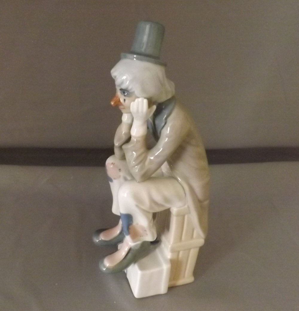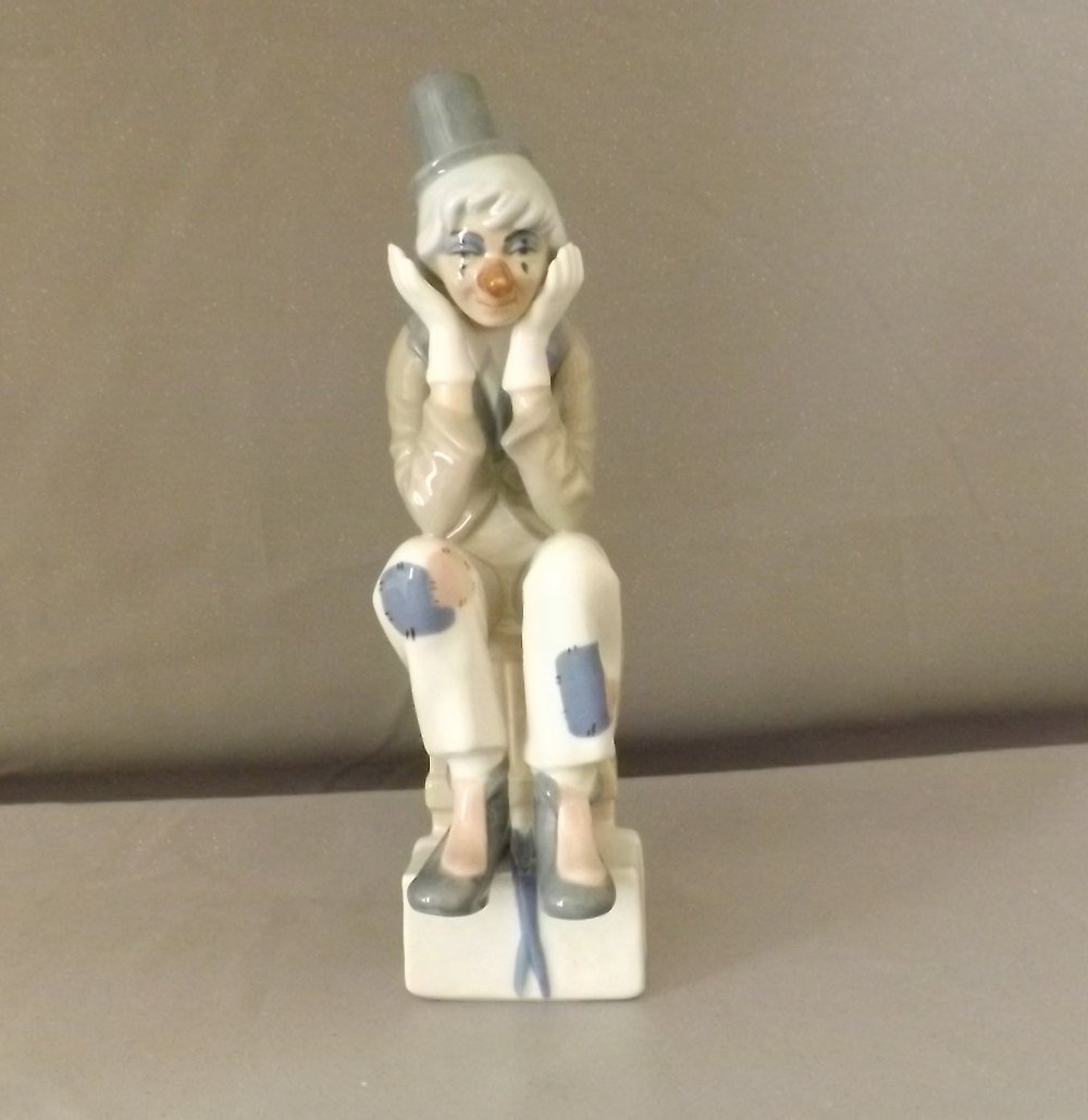 Enesco Clown Figurine Vintage Handpainted Lladro-Style Thinking Clown Statue