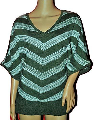 AGB Women's Chevron Striped V Neck Sweater Olive Multi Large