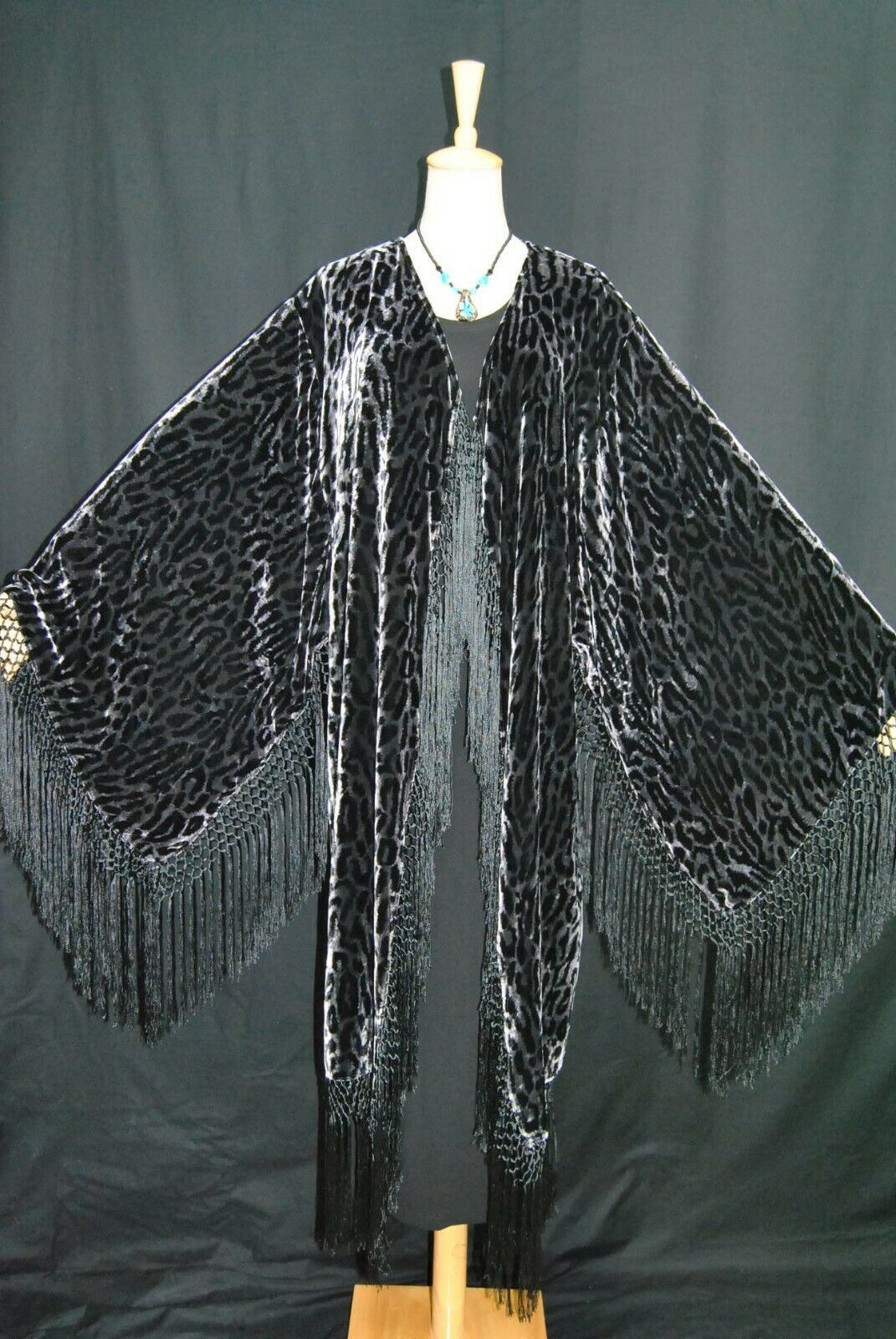 DeLuxe Vintage Velvet&Silk Beaded Oriental Fans Boho Kimono