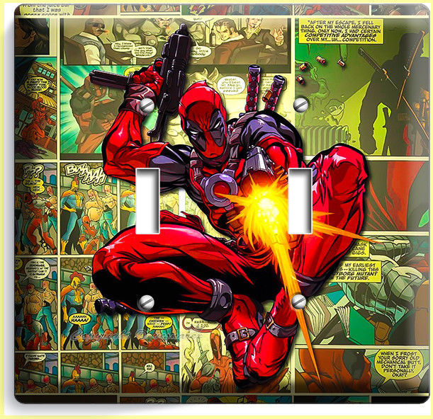 DEADPOOL SUPERHERO COMICS BOOK PAGE 2 GANG LIGHT SWITCH WALL PLATE ROOM HD DECOR