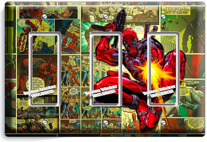 DEADPOOL SUPERHERO COMICS BOOK PAGE 3 GFI LIGHT SWITCH WALL PLATE ROOM ART DECOR