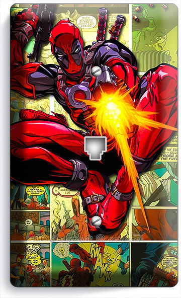 DEADPOOL SUPERHERO COMICS BOOK PAGE PHONE TELEPHONE WALL COVER PLATES ROOM DECOR