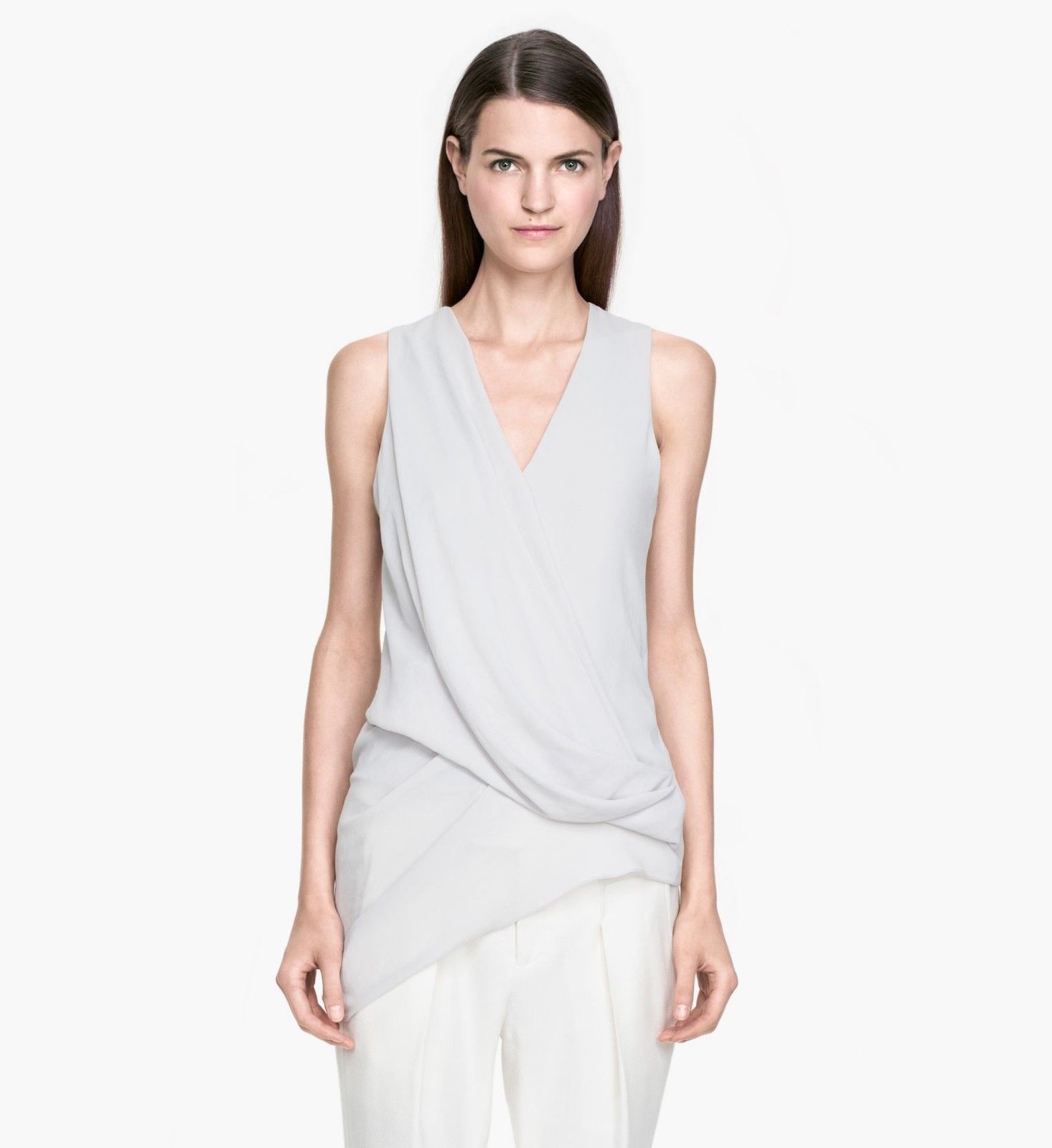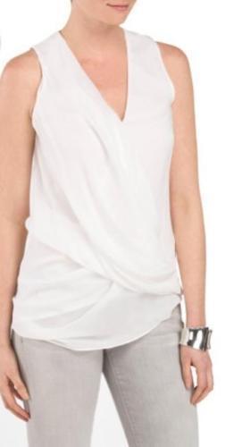 NWT HELMUT LANG LG white lined sheer sleeveless overlap asymmetric hem top shirt