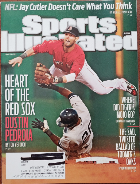 Sports Illustrated August 15, 2011 issue features on cover, Heart of the Red Sox: Dustin Pedroia.