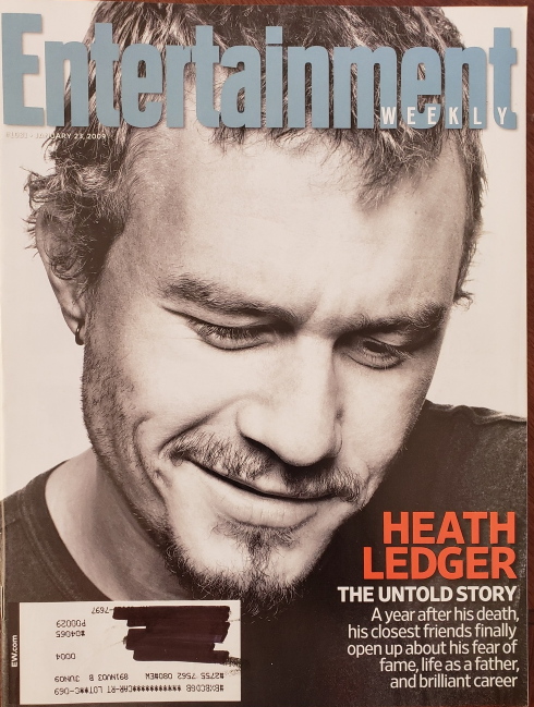 Entertainment Weekly January 23, 2009, featuring on cover Heath Ledger. The Untold Story. A year after his death, his closest friends finally open up about his fear of fame, life as a father, and brilliant career.