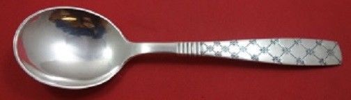 Sterling silver Cream Soup Spoon 6 3/4" in the pattern Saint Jerne aka Star By E. Dragsted. It is not monogrammed and is in excellent condition.