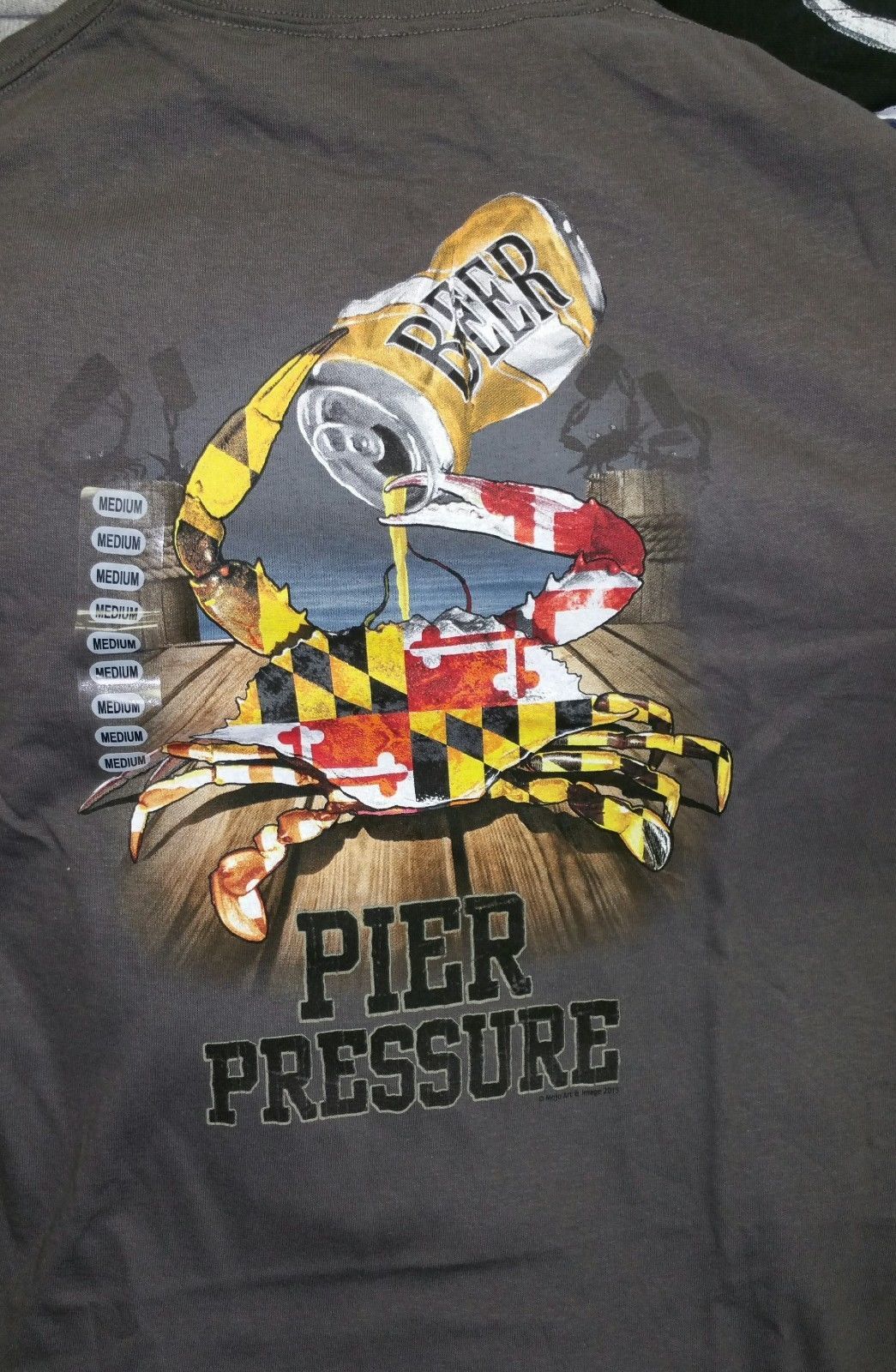 New MARYLAND FLAG PIER PRESSURE CRAB DRINKING BEER T SHIRT