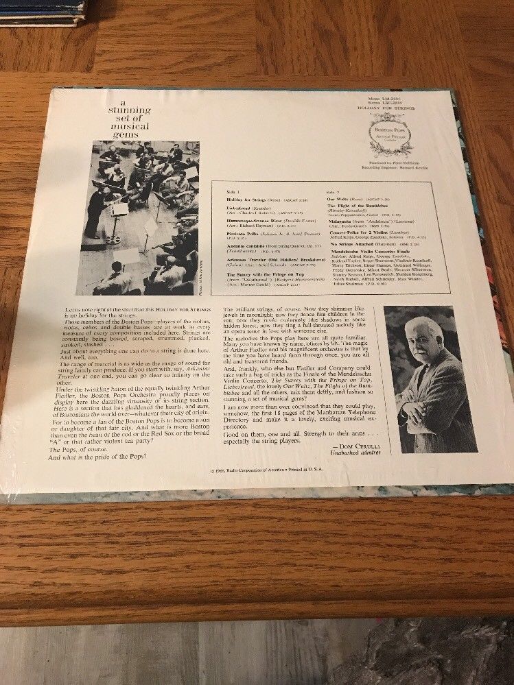 Holiday For Strings Boston Pops Arthur Fiedler LP vinyl record 33 RPM album