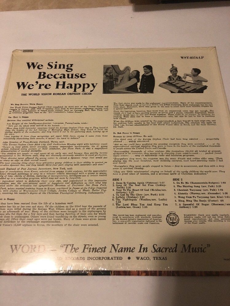 WORLD VISION KOREAN ORPHAN CHOIR We Sing Because We're Happy WORD Shrink NM/NM-