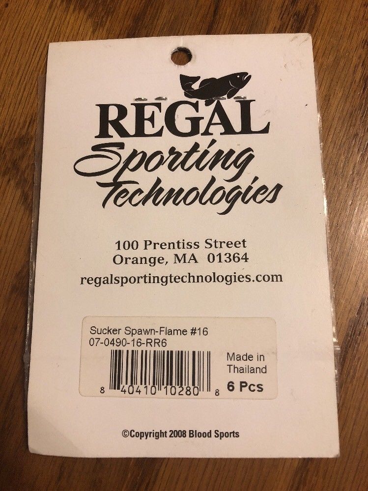 Regal River Roe #07-0490-16-RR6 Ice Fishing Sucker Spawn Flame #16-1pk 6pcs-NEW