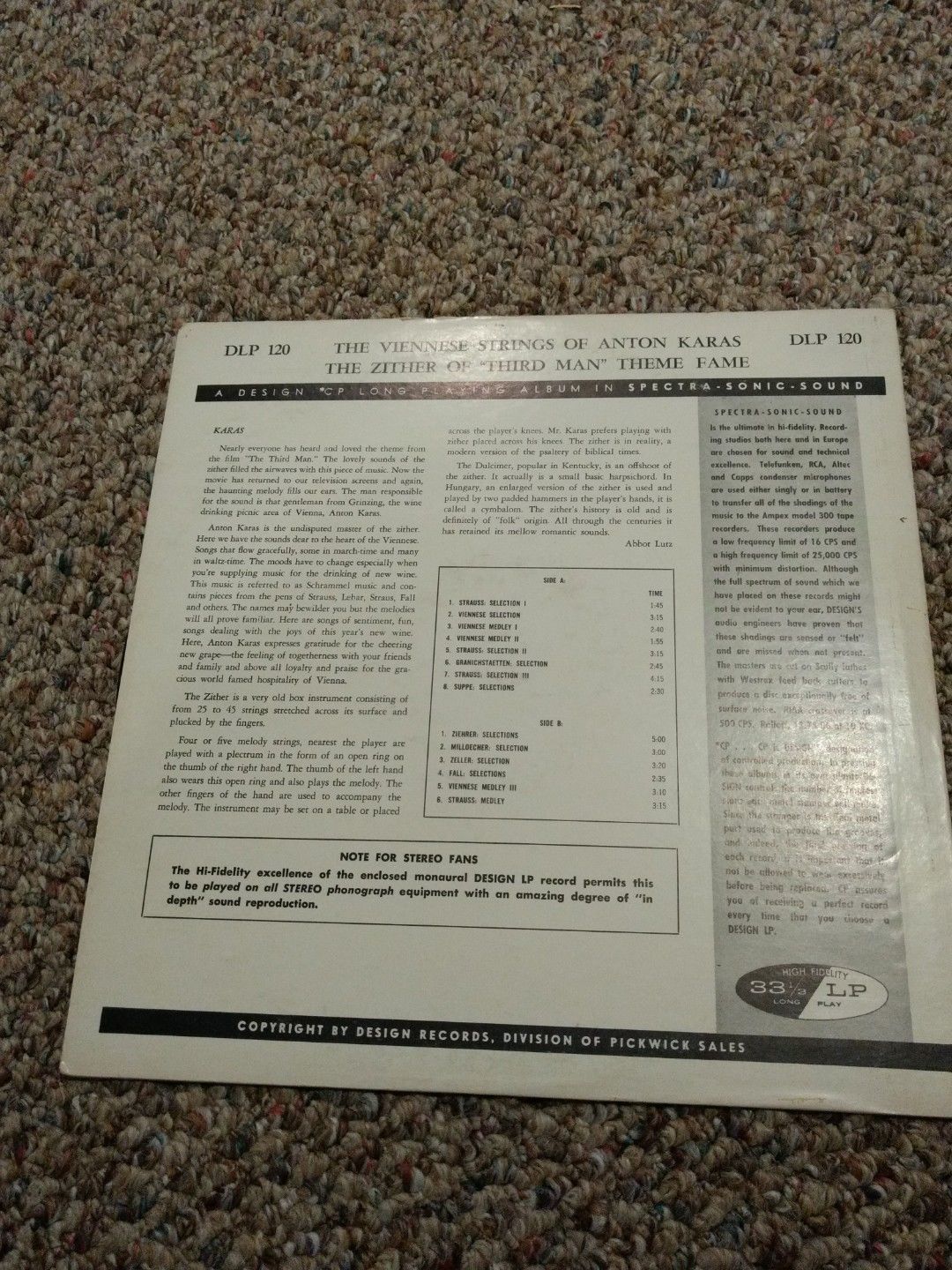 The Viennese Strings Of Anton Karas Vinyl Record LP - Zither Music - SDLP 120