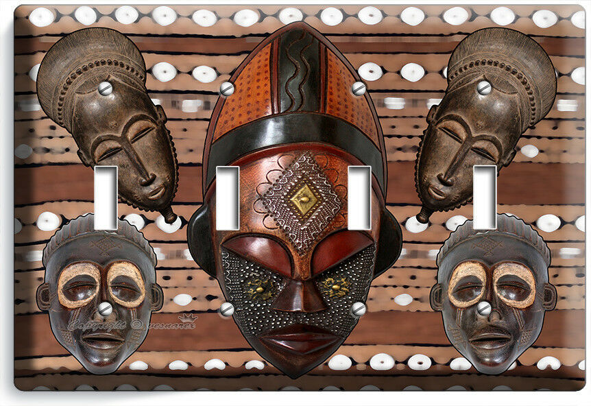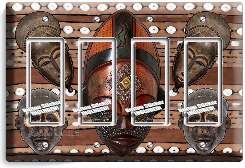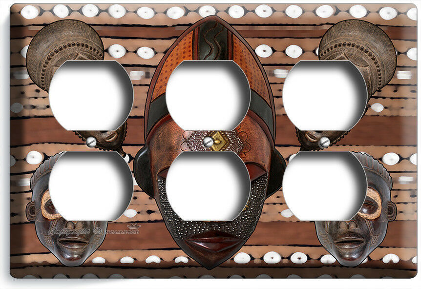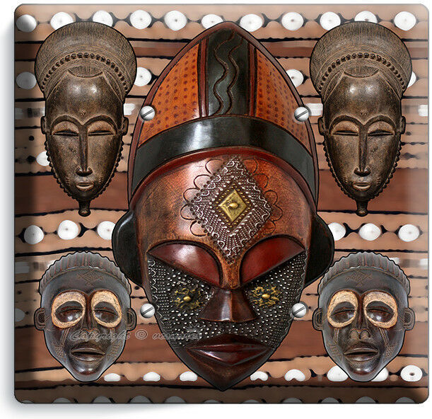 AFRICAN TRIBAL MASK CHIEF WARRIOR MUD CLOTH LIGHT SWITCH OUTLET WALL PLATE DECOR