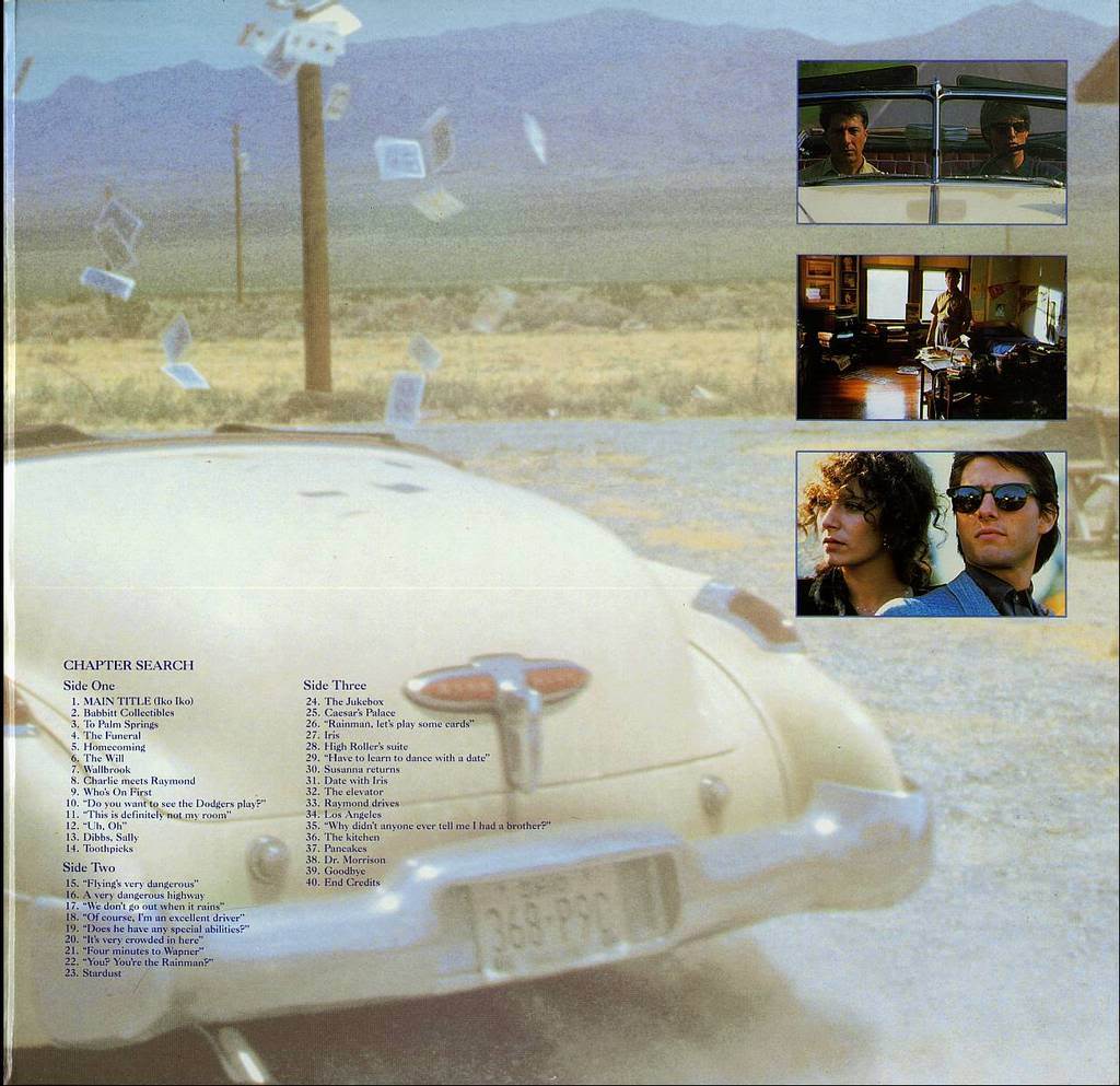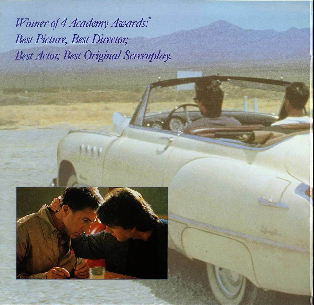Charley is a hustler. He's been on his own long enough to know how to work people and situations. He finds that the father who threw him out as a teen ager has died. He's left him a now antique convertible and something more important, a previously unknown brother, Raymond. Raymond has Asperger's Disorder, but is able to calculate complicated mathematical problems in his head with great speed and accuracy. Their father has left his fortune to Raymond who doesn't even understand what money is for. Charley is enraged by what has happened and by his father keeping Raymond's existence from him for his entire life. He kidnaps Raymond from his residential home but then finds that Raymond will only fly Qantas. The two begin a long road trip that will lead them to an understanding of each other.