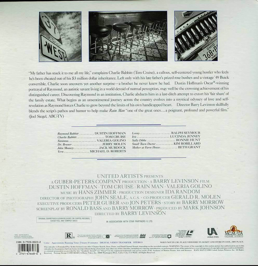 Rain Man Valeria Golino Tom Cruise Laserdisc and 50 similar items