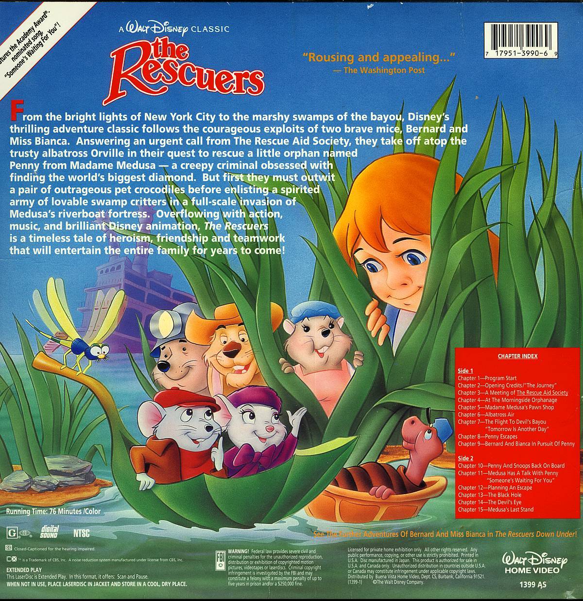This is a previously viewed LASERDISC of the rare Disney animated feature THE RESCUERS, staring the voice tallents of