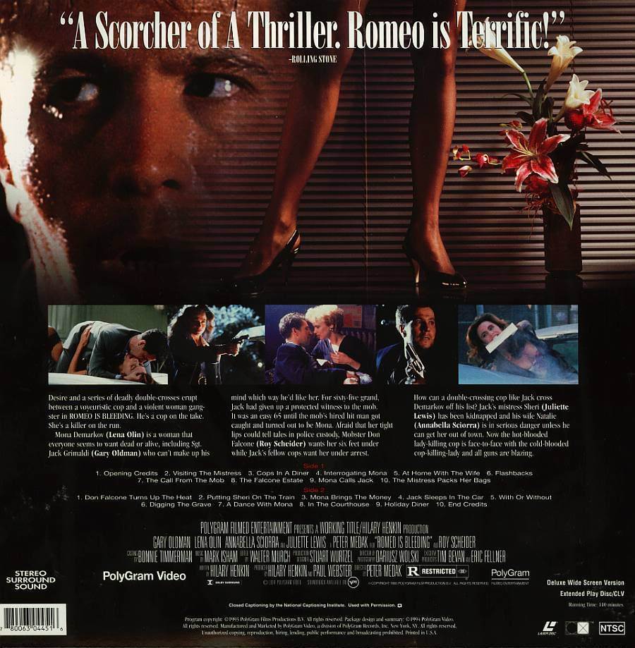 ROMEO IS BLEEDING LTBX LENA OLIN LASERDISC RARE