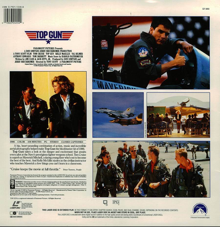 This is a previously viewed LASERDISC of the rare action classic TOP GUN, staring: