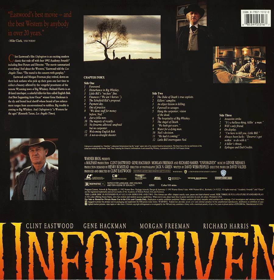 This is a previously viewed LASERDISC of the rare western classic UNFORGIVEN, staring: