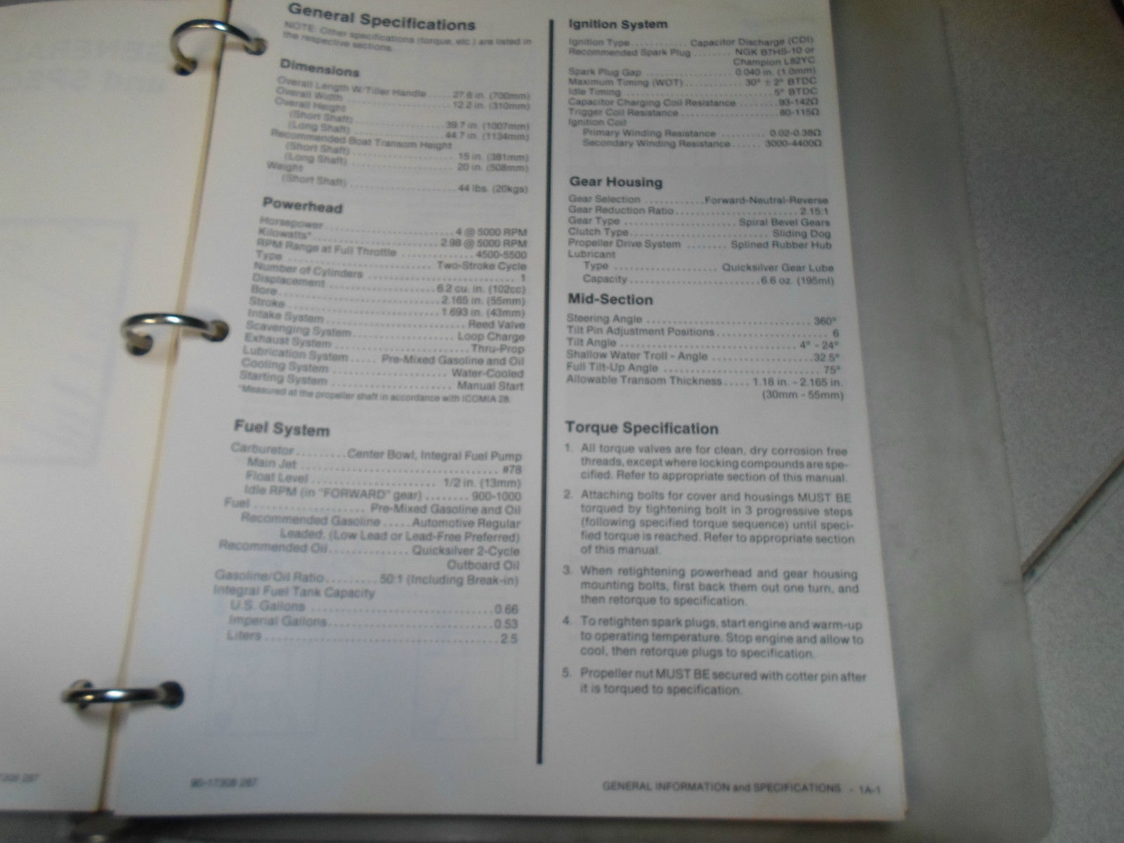 Mercury Outboards Service Manual Binder 4 102 CC Sail power 90-17308