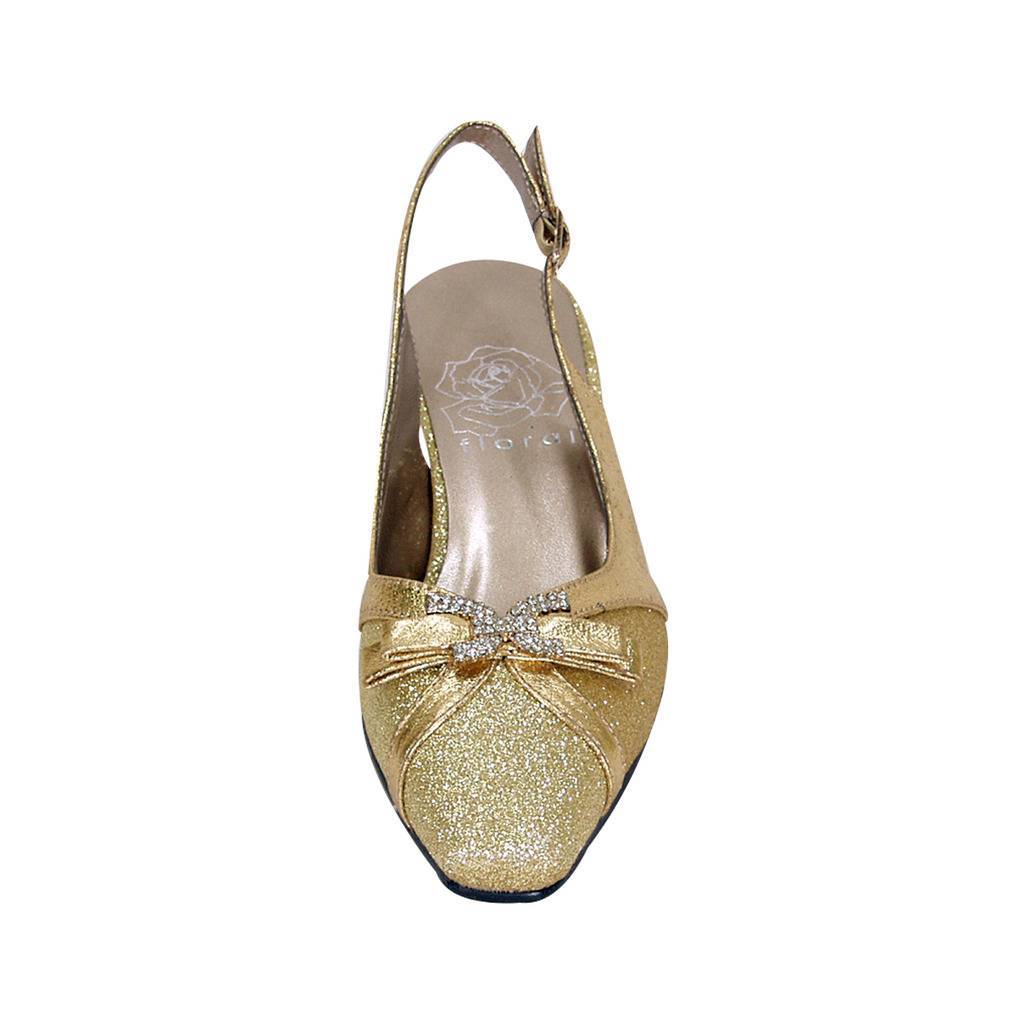 FLORAL Hanna women extra wide width open-toe slingback dress shoes is sophisticated and comfortable with an adjustable buckle for a perfect custom fit. This ladies 2.5" mid-heel slingback features a decorative rhinestone studded bow on vamp, metallic synthetic fabric upper along with an cushioned insole. Its outsole is made of durable and lightweight rubber materials for maximum surface grip to give you support when you are dancing at any special party occasion.
