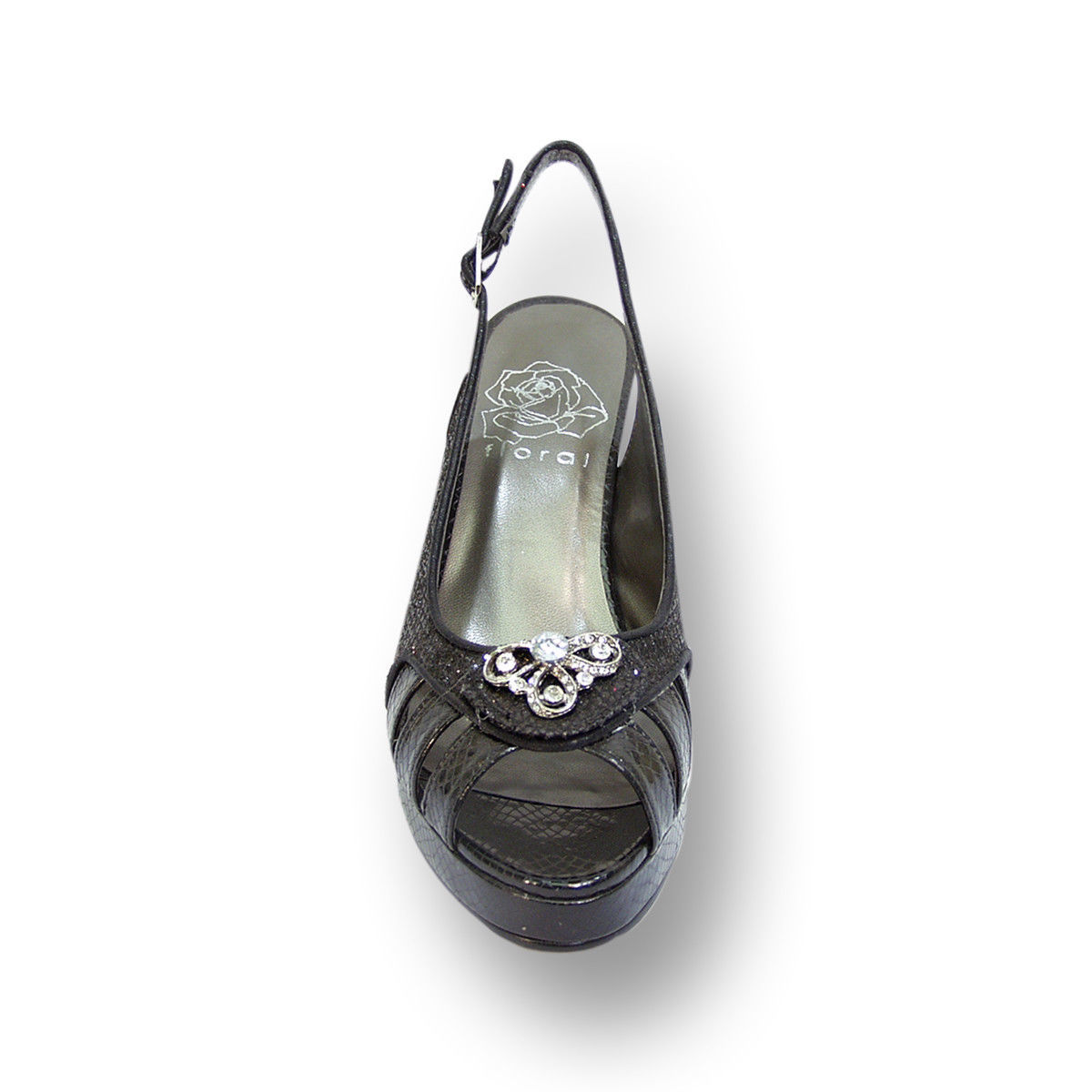 The gorgeous Floral Sue women extra wide width peep toe dress pump is strikingly beautiful for your next special occasion. This 3" high heel elegant ladies platform slingback has a PU stripped toe cap with a sparkly center piece made of rhinestone jewels to create a unique and sophisticated eye catching style.