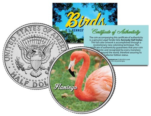 This COLLECTIBLE BIRDS SERIES ? DOMESTICATED DUCK coin is a treasured collectible, combining the popularity of birds with coin collecting. Here is your chance to own a beautifully colorized JFK Kennedy Half Dollar U.S. Coin. This high-quality genuine Legal Tender U.S. coin has been colorized using a unique painstaking multicolor authentic process by the Merrick Mint. Colorizing coins involves the unique application of special inks directly to the surface of a coin that achieves a level of detail, color saturation, and durability that is #1 in the coin industry. The result is an everlasting colorized coin collectible of ultra-high quality. Each coin comes in a premium coin capsule with a Certificate of Authenticity to guaranty that your coin is authentic and recognized by every monetary authority around the world, assuring its Collector Edition status. The Kennedy half dollar is a U.S. fifty cent coin with coin year and mint marks chosen at random.