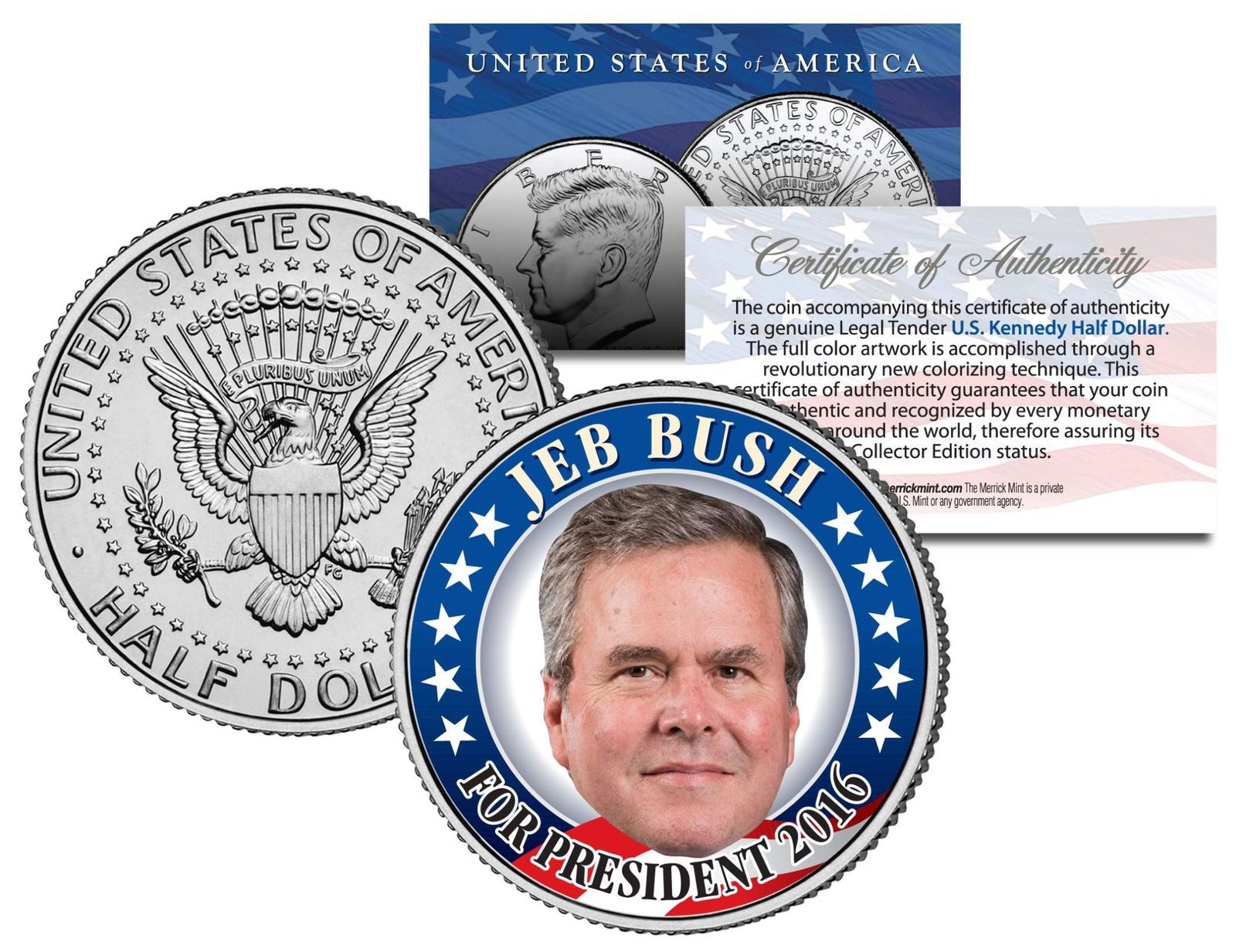 JEB BUSH FOR PRESIDENT 2016 Colorized JFK Half Dollar US Coin Political CAMPAIGN