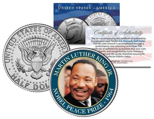 Here is your opportunity to own a beautifully colorized JFK Kennedy Half Dollar U.S. Coin featuring ?MALALA YOUSAFZAI? in the ?NOBEL PEACE PRIZE? coin series. Each coin comes in a premium coin capsule with a full color Certificate of Authenticity to guarantee that your coin is authentic and recognized by every monetary authority around the world, assuring its Collector Edition status. This Legal Tender United States coin has been colorized with an application of special inks directly to the surface of the coin, using a unique and painstakingly multicolor coin process, which achieves a level of detail, color saturation, and durability that is #1 in the coin industry. The result is an everlasting colorized coin collectible of ultra-high quality. The Kennedy half dollar is a U.S. fifty cent coin with coin year and mint marks chosen at random.