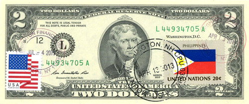 PHILIPPINES - Flags of the World Genuine Legal Tender U.S. $2 Bill Currency