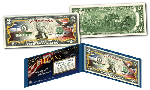 Official World Flags are now being honored on genuine U.S. $2 bills. Don't miss this incredible opportunity to acquire the very first $2 bills honoring the Official Flags of all Nations. The beautiful National Flag graces this historic, privately enhanced $2 bill, and is now available to the public for the very time. This exquisitely detailed genuine Legal Tender $2 bill features a genuine Official World Flag on the reverse in beautiful full color. $2 bills are among the rarest U.S. currencies, and these crisp, uncirculated $2 bills are now being released through this special offer. Each genuine $2 bill comes in a magnificent collector's folio, complete with a full color Certificate of Authenticity. The official seals from the Federal Reserve and the U.S. Treasury attest to each bill's legal tender status and the signing of the Declaration of Independence is depicted on the reverse with the Colorized Nations Flag on top of that and the obverse features Thomas Jefferson. World Flag $2 Bills feature a highly specialized colorization process to create a vibrant and unique piece of collectible that you are proud to own!