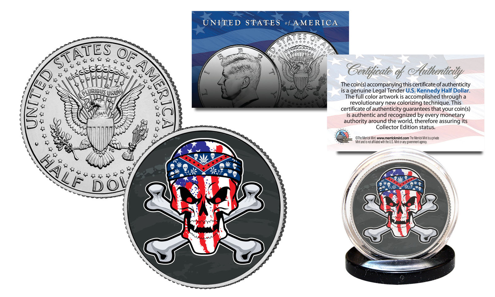 SKULL Official Legal Tender JFK Kennedy Half Dollar US Coin - US Flag Crossbones