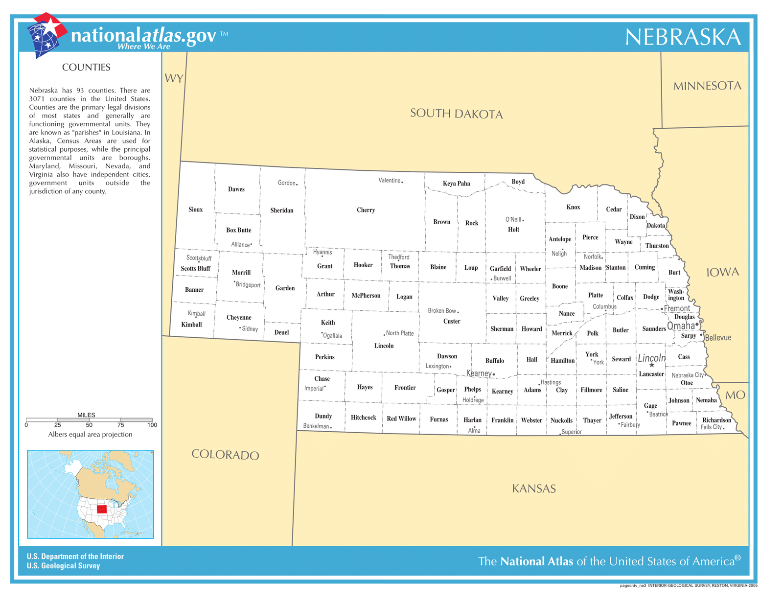 National Atlas US State w/Counties and Cities Laminated Wall Map