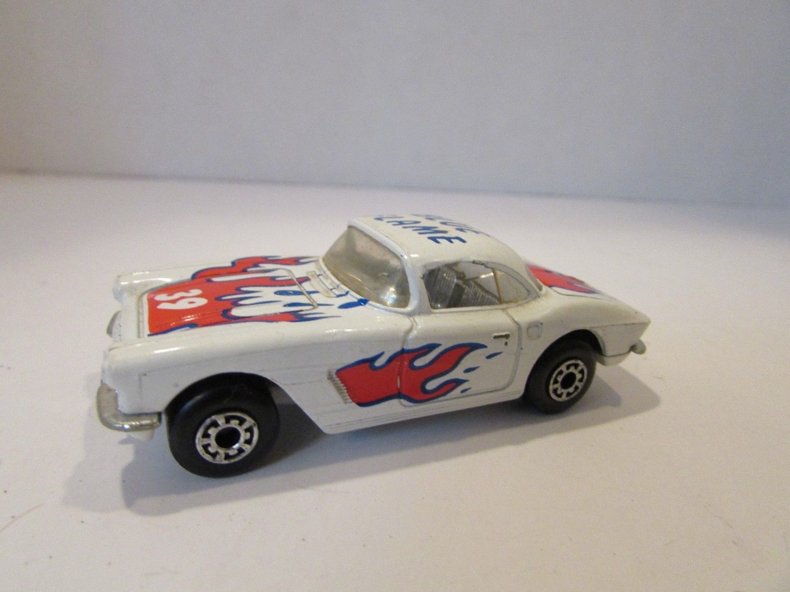 DIECAST MATCHBOX 1962 WHITE CORVETTE MADE IN MACAU 1982 BLUE FLAME H2C