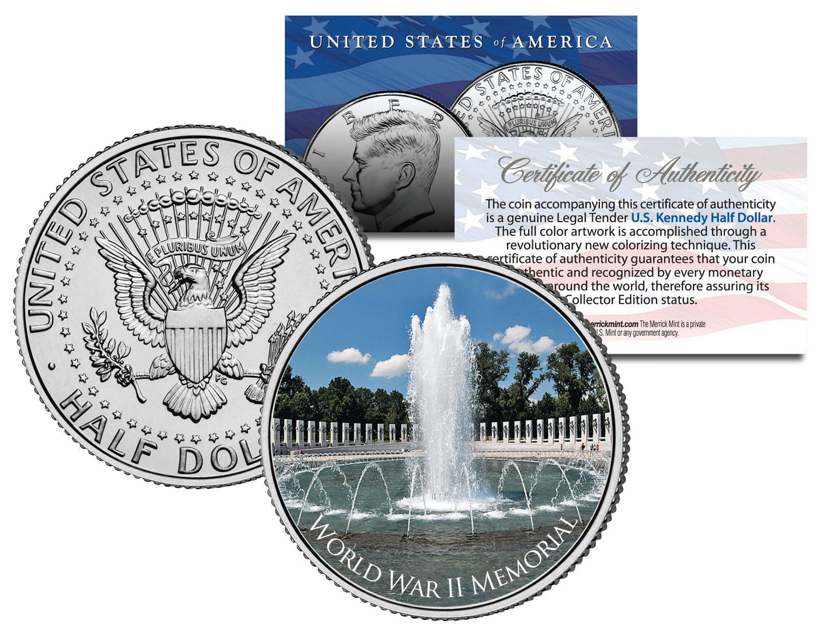 WORLD WAR II MEMORIAL ** Washington D.C. ** JFK Kennedy Half Dollar U.S. Coin