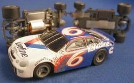 From 2000, Speedway Showdown Set #9503 ONLY, this Brilliantly Painted, Un-used, Un-run, Ford Taurus #6 NASCAR Stocker WIDE BODY, M CHASSIS, is sure to offer some rubbin' in the corners! Super ONE YEAR ONLY ISSUE, Mark Martin Valvoline Cummins Graphics, a Killer Stance on this body, really helps its handling tendencies. This New Old Stock Body, will ALSO mount on just about any 4-position Chassis, such as Life-Like T, Rokar, AmRac, Cox, FAST other similar Quad HO Body Mount style. YOU ARE BUYING ONE BODY AND ONE CHASSIS in this sale.