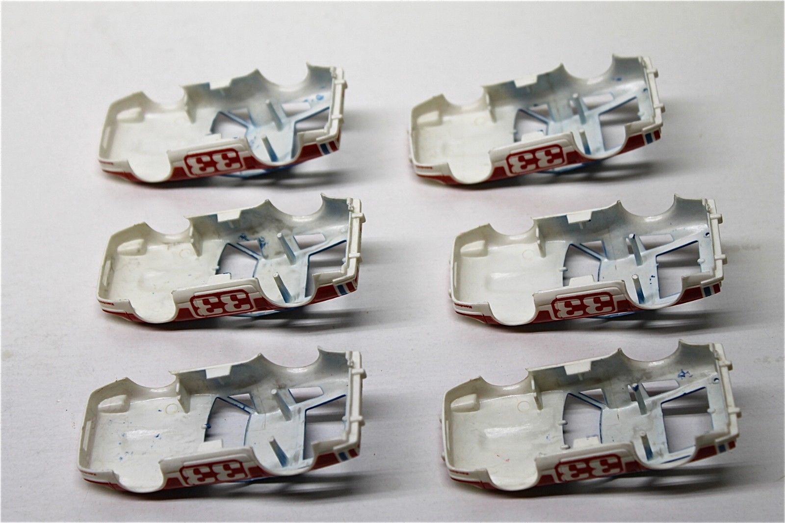 This listing is for SIX (6) 1981 vintage TYCO HO Slot Car BODY-ONLY. GORGEOUS LOOKING Narrow Body! Factory Distributor overstock has never had wing or windshield installed. Great for SCCA or local event races. Add netting or lexan to the openings as desired or leave it as is. All bodies have age, travel and production marks, rubs or smudges. No Body is perfect. All are unused and have never been mounted to a chassis. Most any 440 Magnum or 440-X2 NARROW CHASSIS will drop in underneath. If you have an unclean version in your collection, swapping parts to this one will essentially make it new old stock!