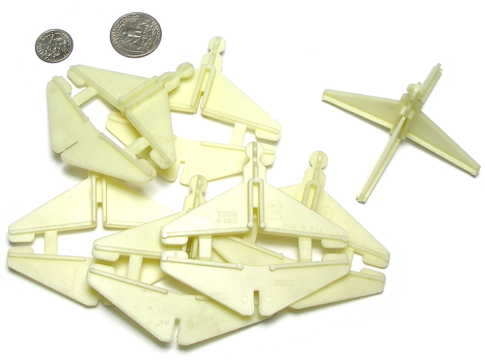 This listing is for SIX (6) Modern 1980's TYCO OR MATTEL, HO SCALE SLOT CAR, GLOW IN THE DARK TRACK SUPPORTS released originally as NITEGLOW B-7807. Included is (6) #2 size supports. THEY ARE EXTREMELY USEFUL FOR NEARLY ANY HO SCALE RACE TRACK. EACH ONE INTEGRATES NICELY WITH THE ROUND RECEPTACLE ON THE BOTTOM OF TYCO OR MATTEL TRACK. THEY MAY WORK WITH OTHER TRACKS AS WELL. Great addition to just about any Slot Car Race Course. They really Glow Too! Adding these, Glow Guard Rail, Glow Barrels other such additions to really make night racing possible! Much better to light the Track all around with accessories, than sap the power from your cars to light up a bulb down the straight aways.