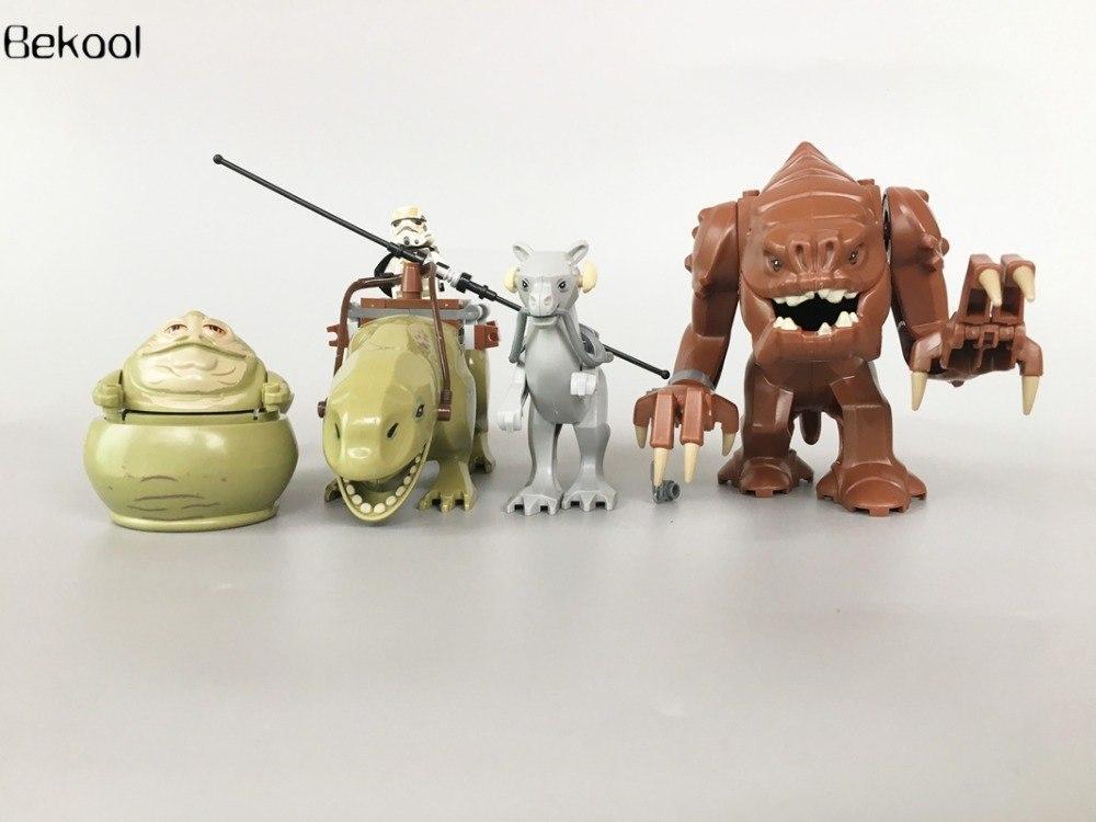 4pcs Star Wars Rancor Dewback with Sandtrooper Tauntaun Jabba Hutt Minifigures