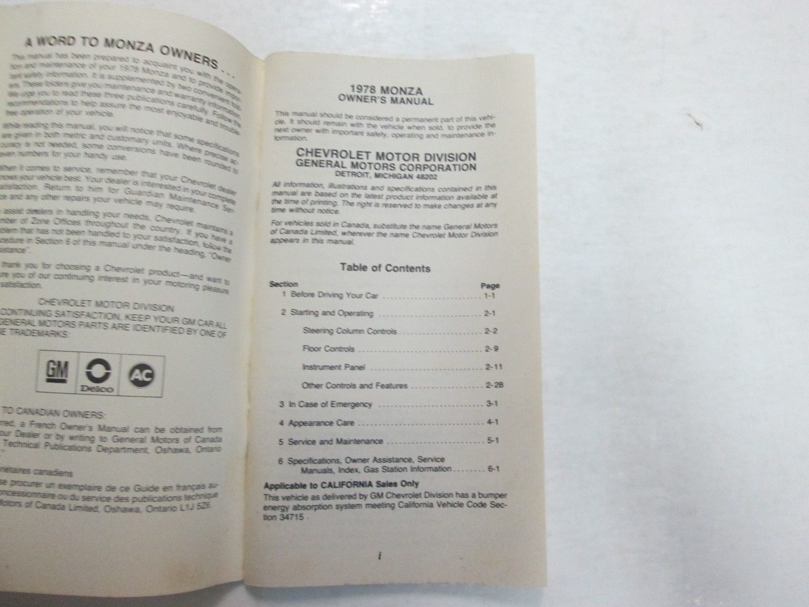 1978 Chevrolet Monza Owners Manual Operating and 48 similar items