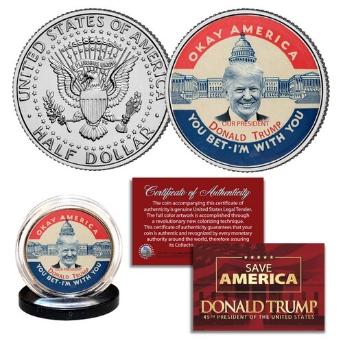 This WALL STREET BULL coin is a treasured collectible. Here is your chance to own or gift a beautifully colorized JFK Kennedy Half Dollar U.S. Coin. This high-quality genuine Legal Tender U.S. coin has been colorized using a unique painstaking multicolor authentic process. Colorizing coins involves the unique application of special inks directly to the surface of a coin that achieves a level of detail, color saturation, and durability that is #1 in the coin industry. The result is an everlasting colorized coin collectible of ultra-high quality. Each coin comes in a premium coin capsule with a Certificate of Authenticity to guaranty that your coin is authentic and recognized by every monetary authority around the world, assuring its Collector Edition status. As a bonus, you will also receive an attractive, handy Gift Message Card for you to personalize when giving the coin as a gift.