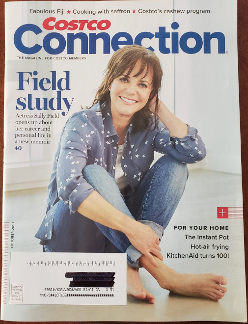 Costco Connection October 2018 magazine featured story on cover, Sally Field, acclaimed, award-winning television and film actress opens up in her memoir, In Pieces.