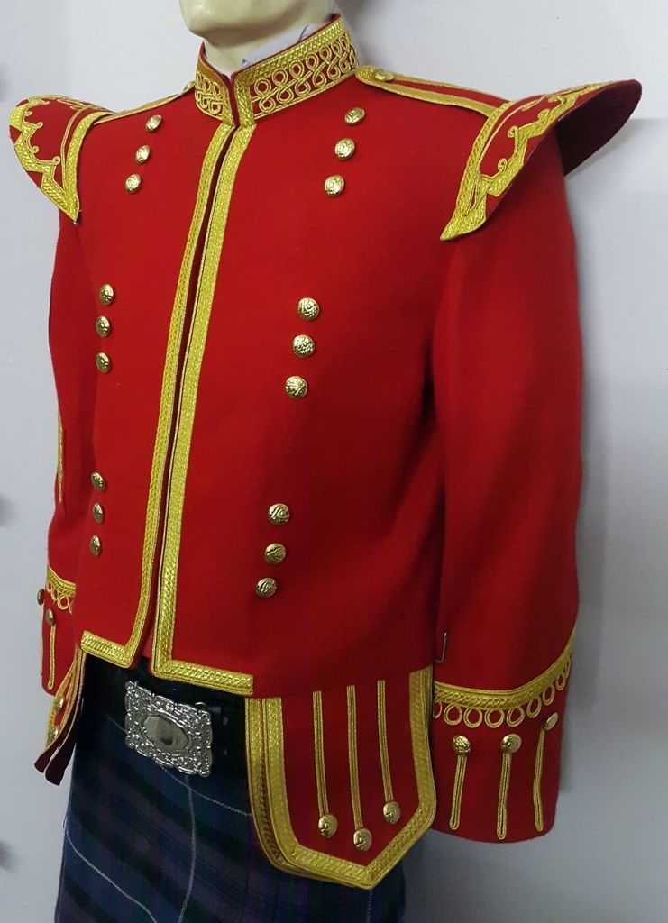 Piper or Drummer Doublet Red Blazer Wool Gold Braid And Trim Fancy Collar